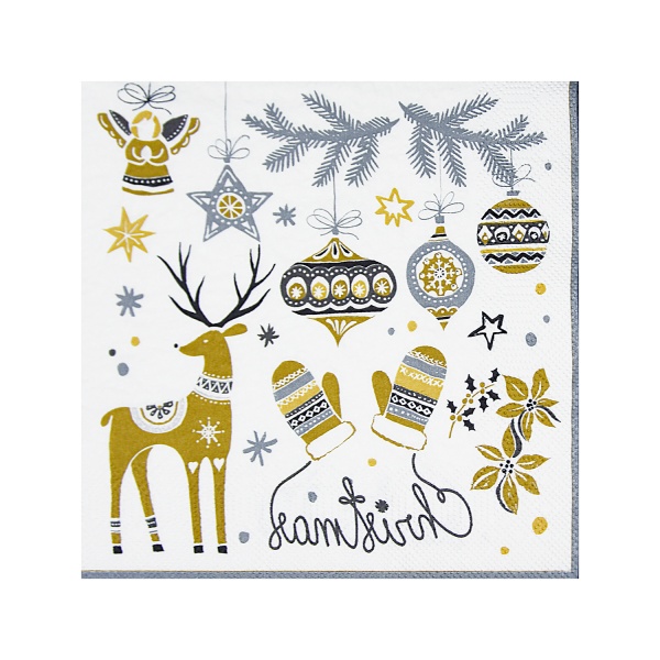 Papírové ubrousky s vánočním motivem. Celoplošně potištěné třívrstvé ubrousky v jasných barvách, velmi příjemné na omak, s vysokou savostí. Tyto krásné ubrousky spolehlivě oživí Váš vánoční stůl a navodí pohodovou atmosféru nejen u štědrovečerního stolu. Balení 20 ks.