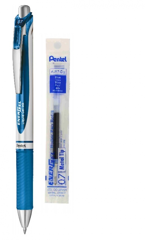 Gelové pero v modrém provedení s rychleschnoucí vyměnitelnou gelovou náplní EnerGel.