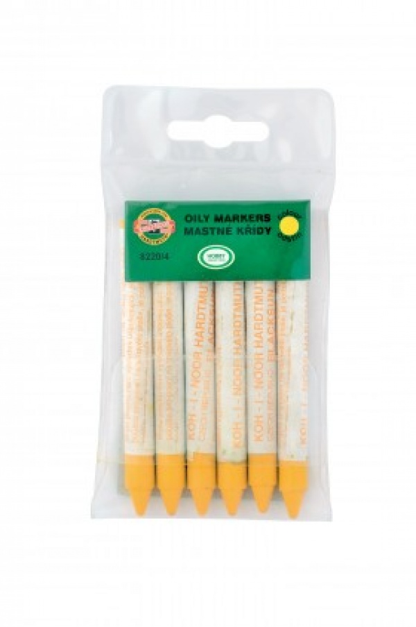 Mastné křídy na sklo a porcelán. Balení 6 ks. Barva žlutá.